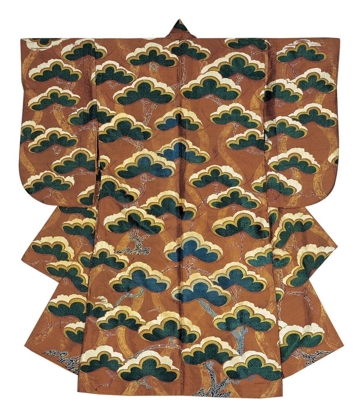茶地立涌雪持松模样缝箔(日本桃山时代,17世纪)