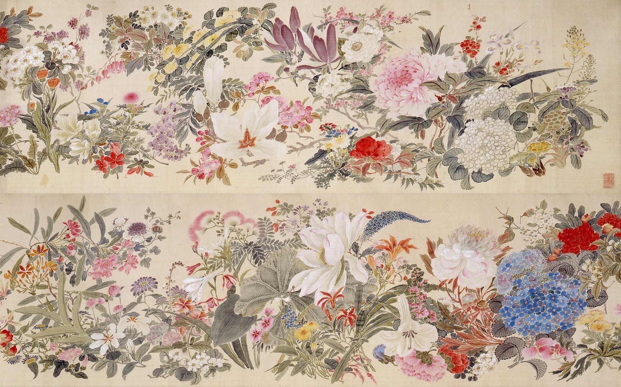 《百花》(局部)/ One Hundred Flowers (detail),田能村直入,1869年