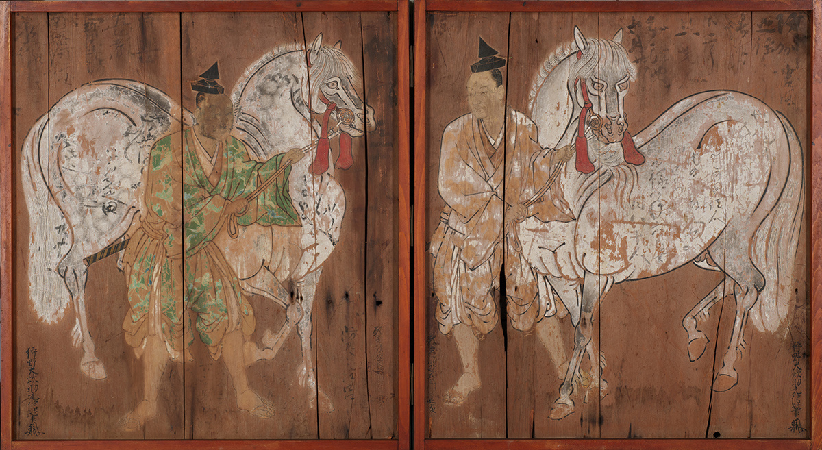由著名画师狩野元信为兵库贺茂神社绘制,画面庄重神圣,展现了马作为神明使者的崇高地位,是神道信仰与艺术的结合。